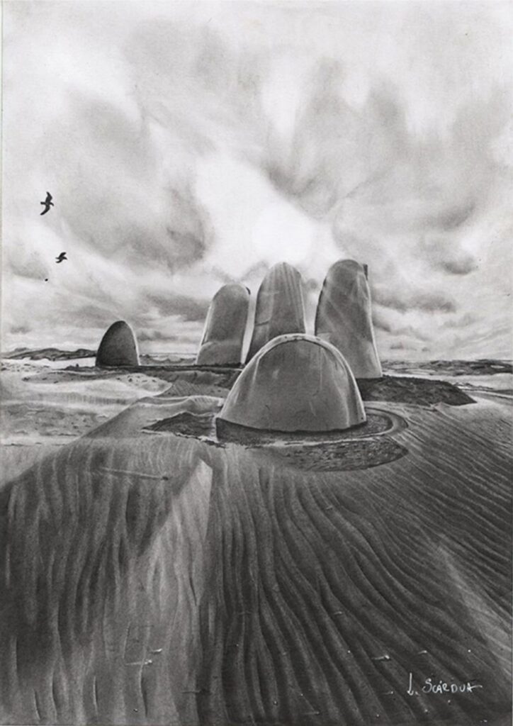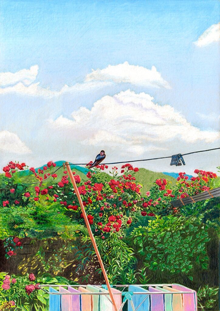 작가의 뛰어난 색연필 사용은 풍경의 질감을 놀라운 감성으로 전달하며 빛과 그림자의 균형을 맞춰 생생하면서도 부드럽게 흐릿하게 느껴지는 몽환적인 분위기를 연출합니다.