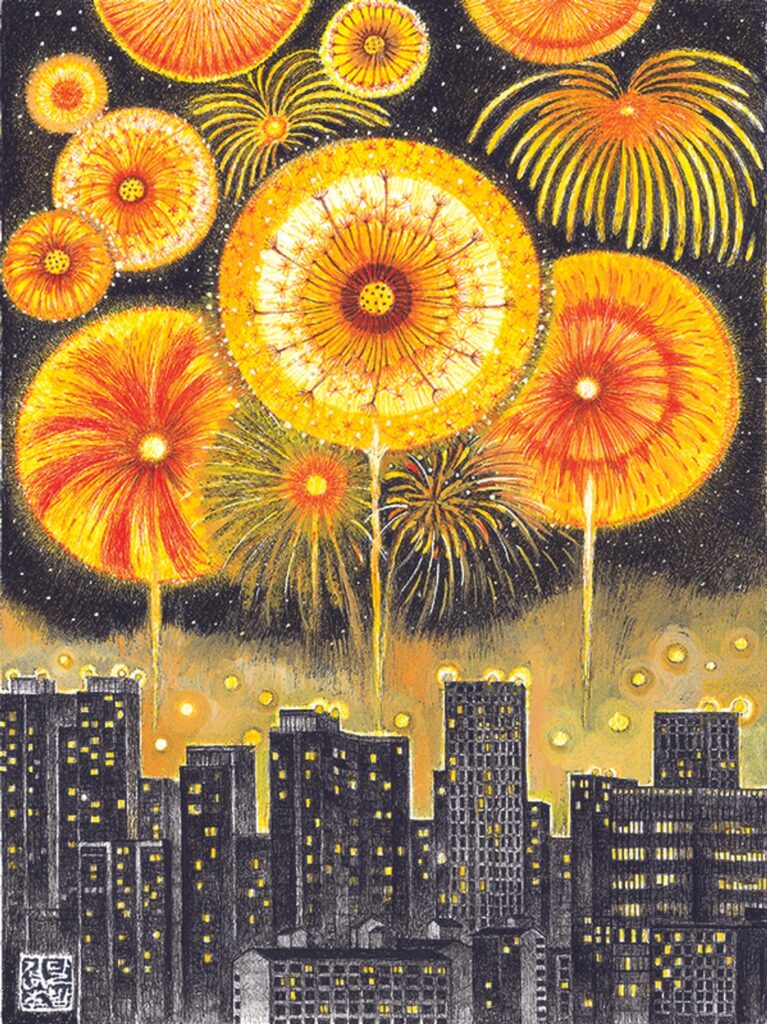이 작품은 창의성과 시각적 불꽃이 돋보입니다.